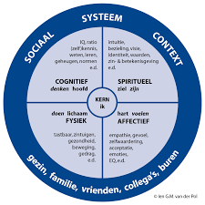 Tijdens de opleiding werd “inclusive coaching” geïntroduceerd. Tegenwoordig weet iedereen wat het woord inclusief betekent. Toen werd het al meer duidelijk voor me. Inclusive coachen houdt in dat je kijkt naar de mens in zijn geheel met al zijn facetten (zie afbeelding):
