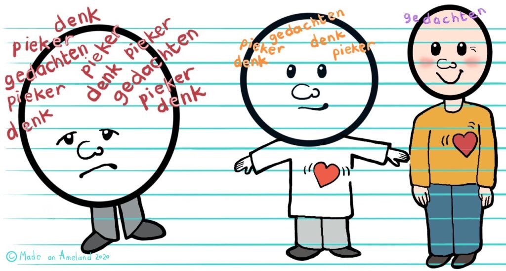 Ik geloof niet in alleen maar praten. Praten over hetgeen je wil veranderen, praten over hetgeen wat je tegenstaat, praten over dromen en wensen die je hebt. Nee, voelen is belangrijk! Het voelen van je emoties (hart) en deze laten zijn. En voelen in je lijf, waardoor je weet dat is leuk en dat niet. Zodat je van een “wandelend hoofd op pootjes” kunt transformeren naar meer balans tussen hoofd, hart en lijf. Van hard naar hart. Een opstelling helpt je om te voelen met je hart en om te voelen met je lijf. Lukt het je zelf (nog) niet dan helpen de representanten je daar zeker bij!